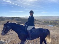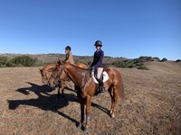 It turns out I didn’t need to worry. 6 year old Billy, a flunked out former professional bucking horse, was a perfect gentleman and didn’t put a foot wrong the entire four hour hunt. Foxhunting can be mentally hard for me- as a dressage rider it’s tempting to want to micromanage and be constantly balancing and correcting, so letting go and trusting the horse to sort out his own footwork and balance is challenging. Going through some of the tricky terrain, specifically the thick and forbidding looking chaparral, I finally just told myself that Billy had so far proved himself to be quite self sufficient and that he didn’t want to stumble or fall, so I should trust Billy to safely carry us through. By the end of the hunt I was confident cruising along and going over or through whatever came our way.