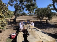 The next phase of the day was wine tasting at Kalyra Winery in Santa Ynez. The winery is owned by a Pony Club family and clients of Allyson’s and looks exactly like what you would envision when you think of a wine country vineyard- fields of grapevines in a bucolic valley with the foothills and mountains in the background. (Fun fact: the winery made an appearance in the 2004 movie Sideways, a rom-com that took place in Santa Barbara wine country.) We each tasted four wines (all were delicious so it’s hard to pick a favorite) while enjoying looking out over the vineyards and fields.