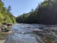 The official group paddle that had been organized for Friday was canceled due to the forecast, but after monitoring it closely for a while, a small group of kayakers decided it was safe enough to go run section 3.5, Thrifts to Woodall. Scott was part of the group and before he headed out to hit the river, set up the tent so I could start setting up the rest of camp and have a place to nap and relax while he paddled. The weather ended up being fine despite some showers and I enjoyed a restful afternoon of reading and lounging around camp.