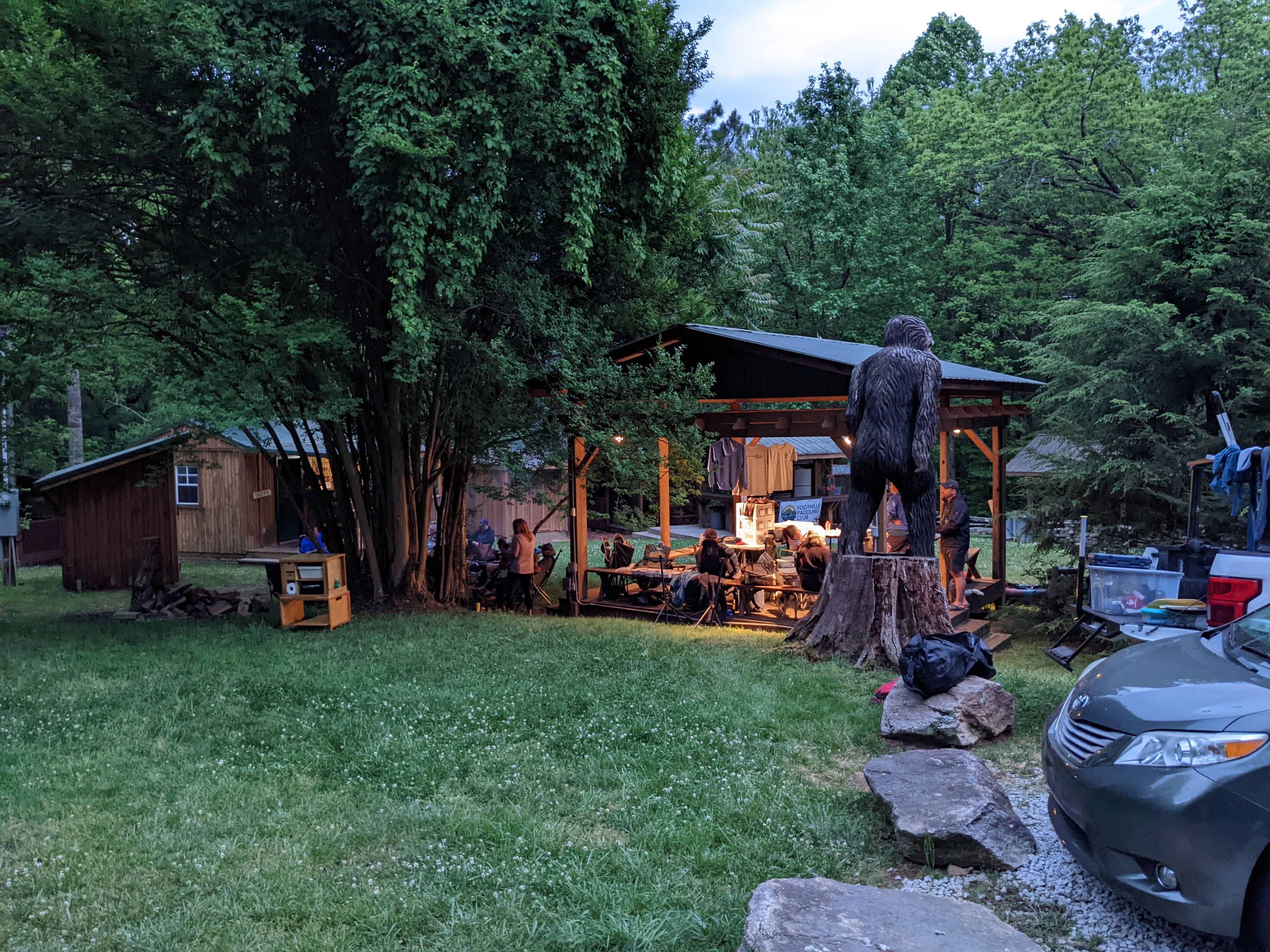 On Saturday night we had a barbeque cookout and enjoyed campfire time again while the club raffle went on. Over $6,000 of items and activities had been donated to the club for the event. Scott won a trucker hat donated by Appalachian Outfitters and gave it to me. Scott had a dessert trick up his sleeve… he had brought everything to make funnel cake over the fire. It was a hit and he cooked up funnel cakes for anyone that wanted one. (Several weeks later, FPC members that we run into are still talking about it!)
