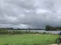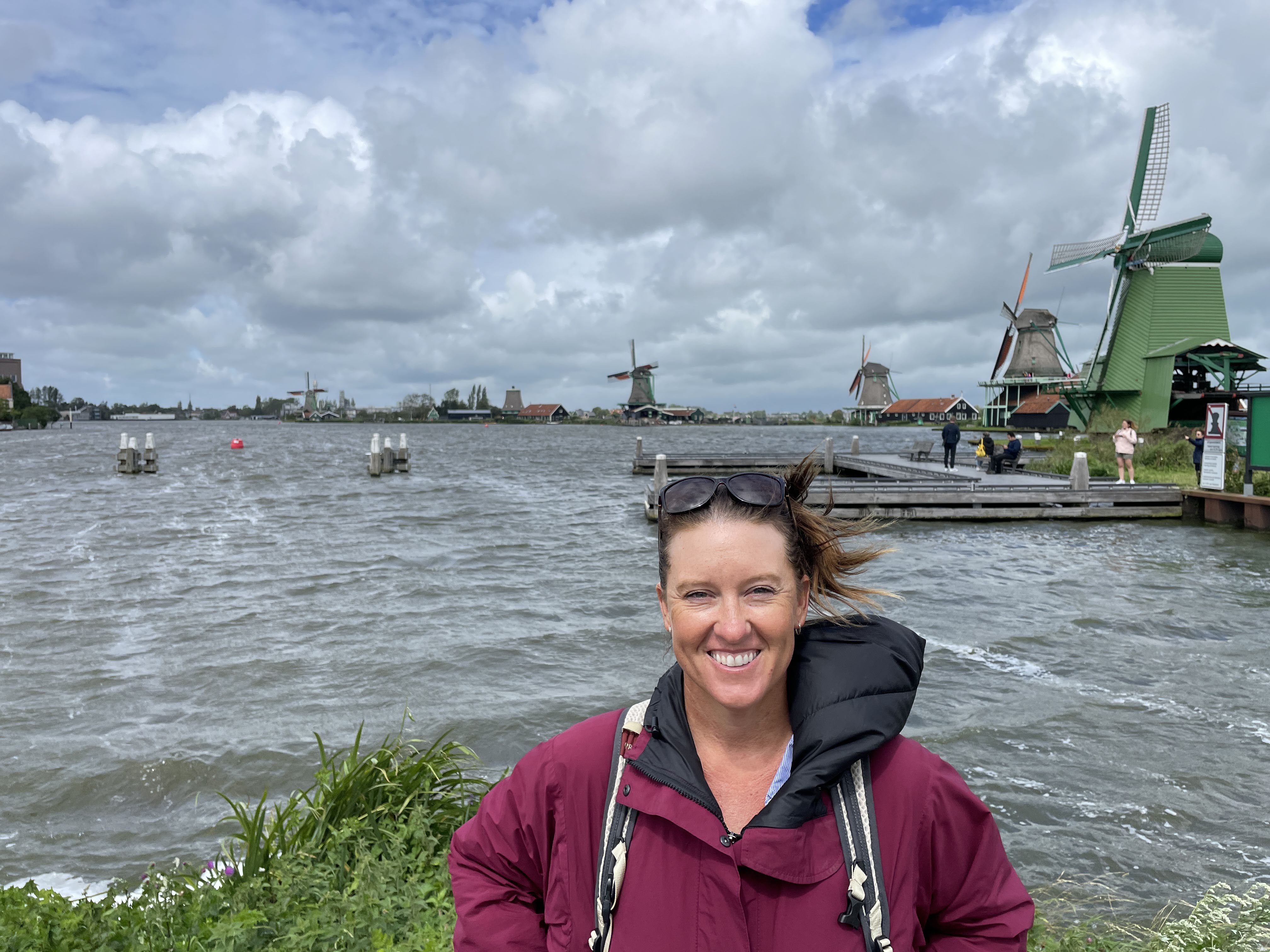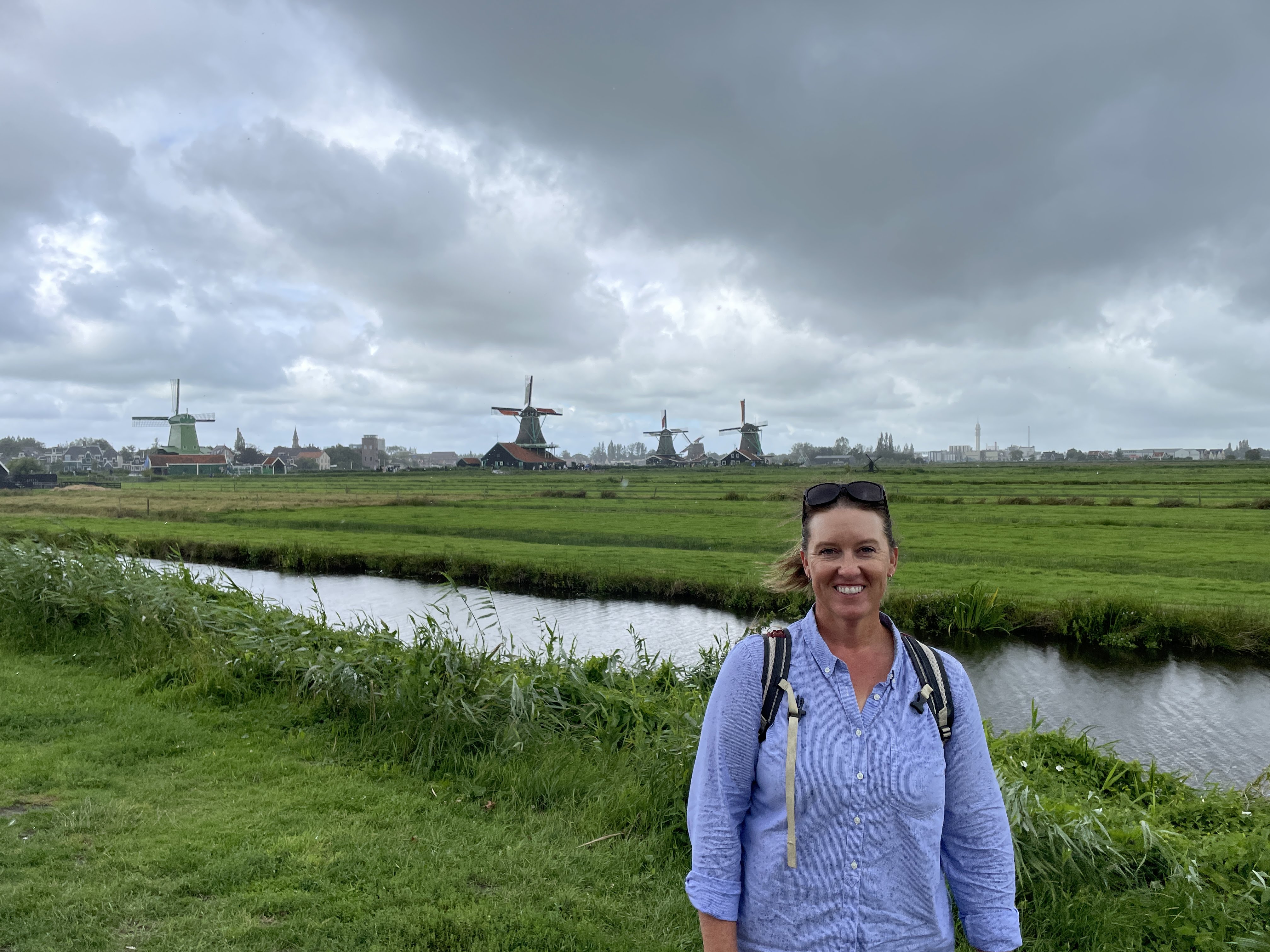 The next morning we were on a mission to rent bikes to trek out of the city to the village of Zaandam to see windmills- a very Dutch experience for sure! I was a nervous wreck peddling in Amsterdam but once we got out into the smaller suburbs and quaint villages and then into the parks I calmed down and was able to enjoy the sights. The wind was fierce (not quite sure why I was surprised by this since it is advantageous to build a windmill in an area that experiences wind) which made the ride feel hard but the sights were well worth it once we got there. We had a quick picnic lunch and walked around the windmills for a bit before venturing back. This time we took a more direct route and it was easier since the wind was at our backs. We had to take a free ferry both going and coming and it was entertaining to see the bikes outnumber the cars nearly 3:1. All told, our bike ride was about 25 miles and was definitely the longest bike ride I have ever done and my rear-end would remind me of that for the next few days, although it was a fantastic way to spend a day.