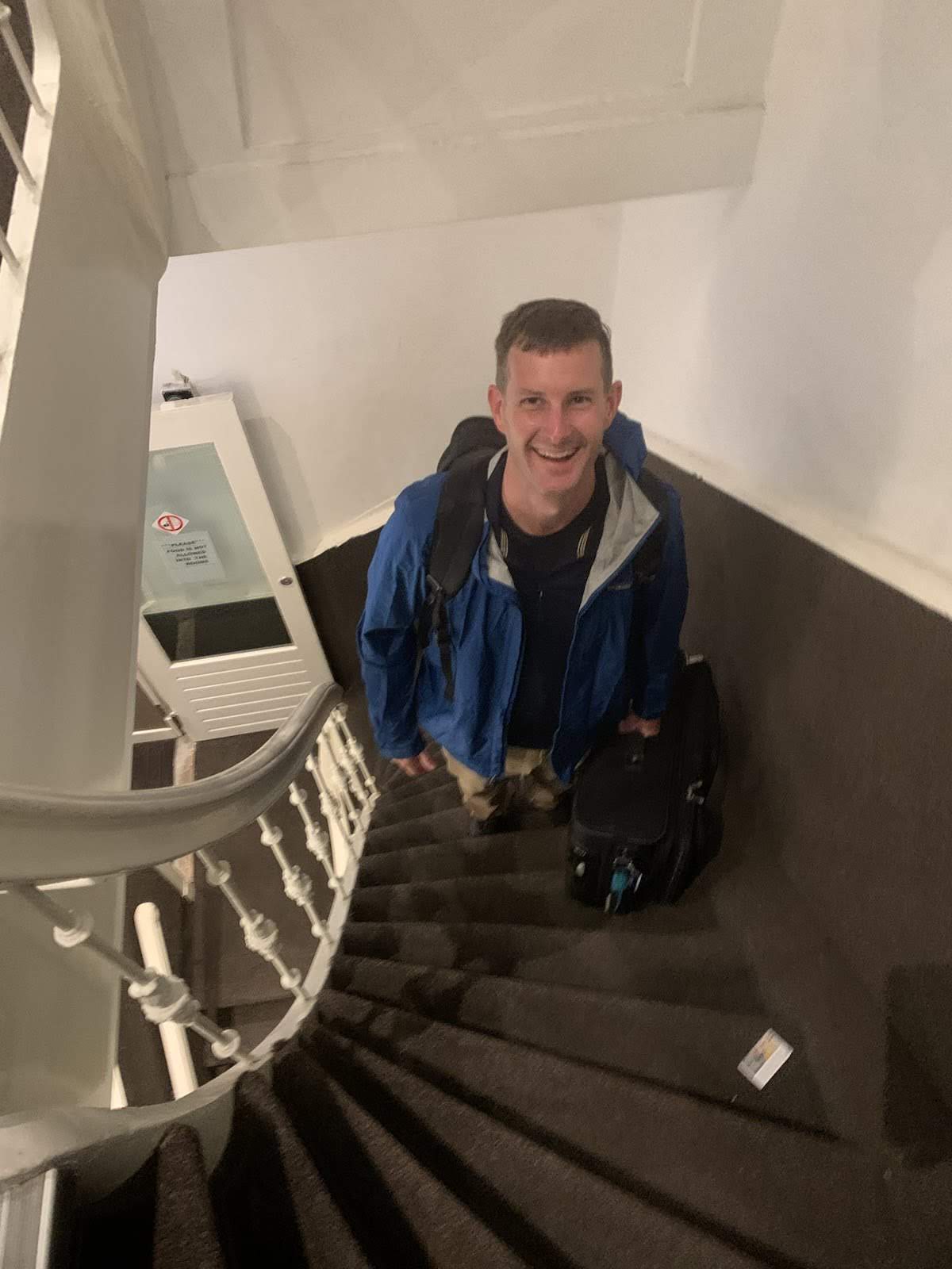 Our room in the Hotel Manofa was laughably small, much like a dorm room, but we expected that going in and realistically we just needed somewhere to shower and rest our heads at night and hadn’t planned on spending time lounging around the accommodations. The steep and narrow staircase that had to be traversed up four flights to reach the tiny room proved entertaining and Scott took advantage of that moment to remind me that had I not brought a carry-on*, the staircase would have been easy.