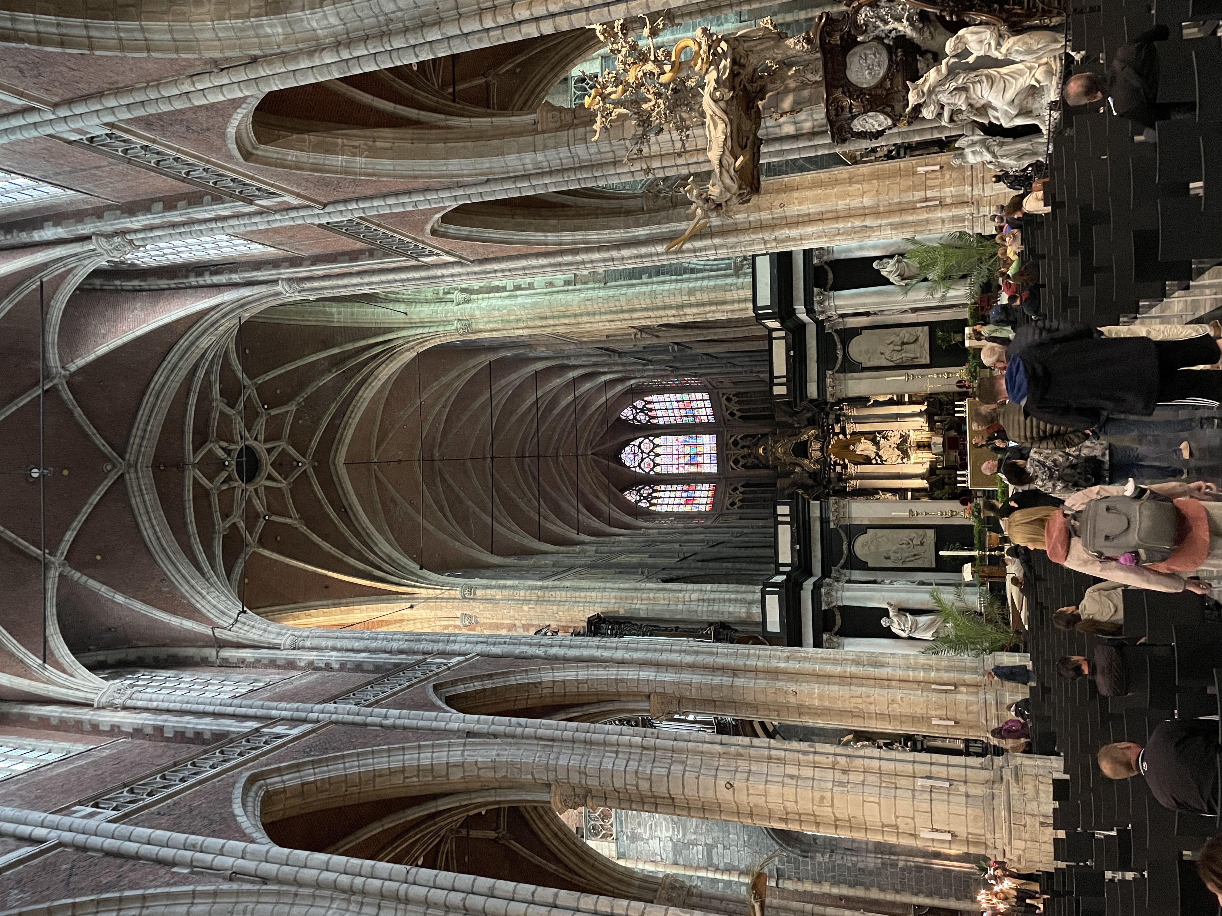 This cathedral is home to the magnificent Ghent Altarpiece which is also called the Adoration of the Mystic Lamb. It has many claims to fame including being considered one of the great masterpieces of European art, being the first major oil painting, and its creation is considered to be what marks the transition from Middle Age to Renaissance art. It has a tumultuous and storied past and has been stolen multiple times from its conception in 1432 and up to WW1. During WW2 it was removed from Ghent and was supposed to be taken to the Vatican for safekeeping but while en route Italy declared themselves an Axis power so the Altarpiece ended up staying put in France for a bit. Hitler then seized it and it stayed in Bavaria until fighting ramped up in that area and it was moved to a salt mine in Austria. While safe from bombs the salt mine wreaked havoc on the painting and damaged the paint and varnish which meant it would need extensive restoration. The search and recovery mission for the masterpiece was a major plot point in the 2014 film The Monuments Men. It is certainly worth a Google search to see it and learn more about it. The line to go into the room where the Altarpiece is housed was quite long and we had things to do and places to see so we didn’t end up seeing it in person.