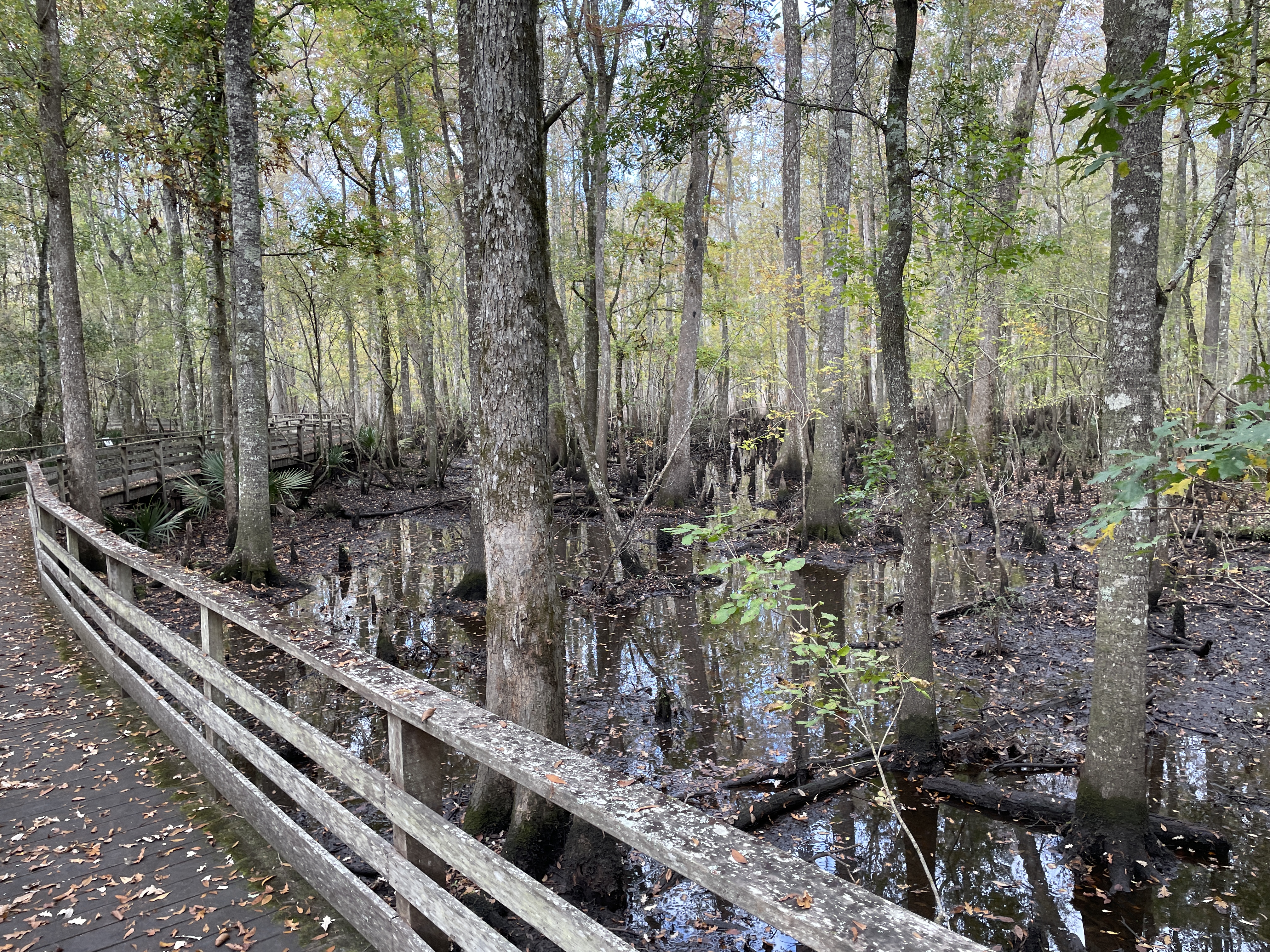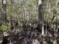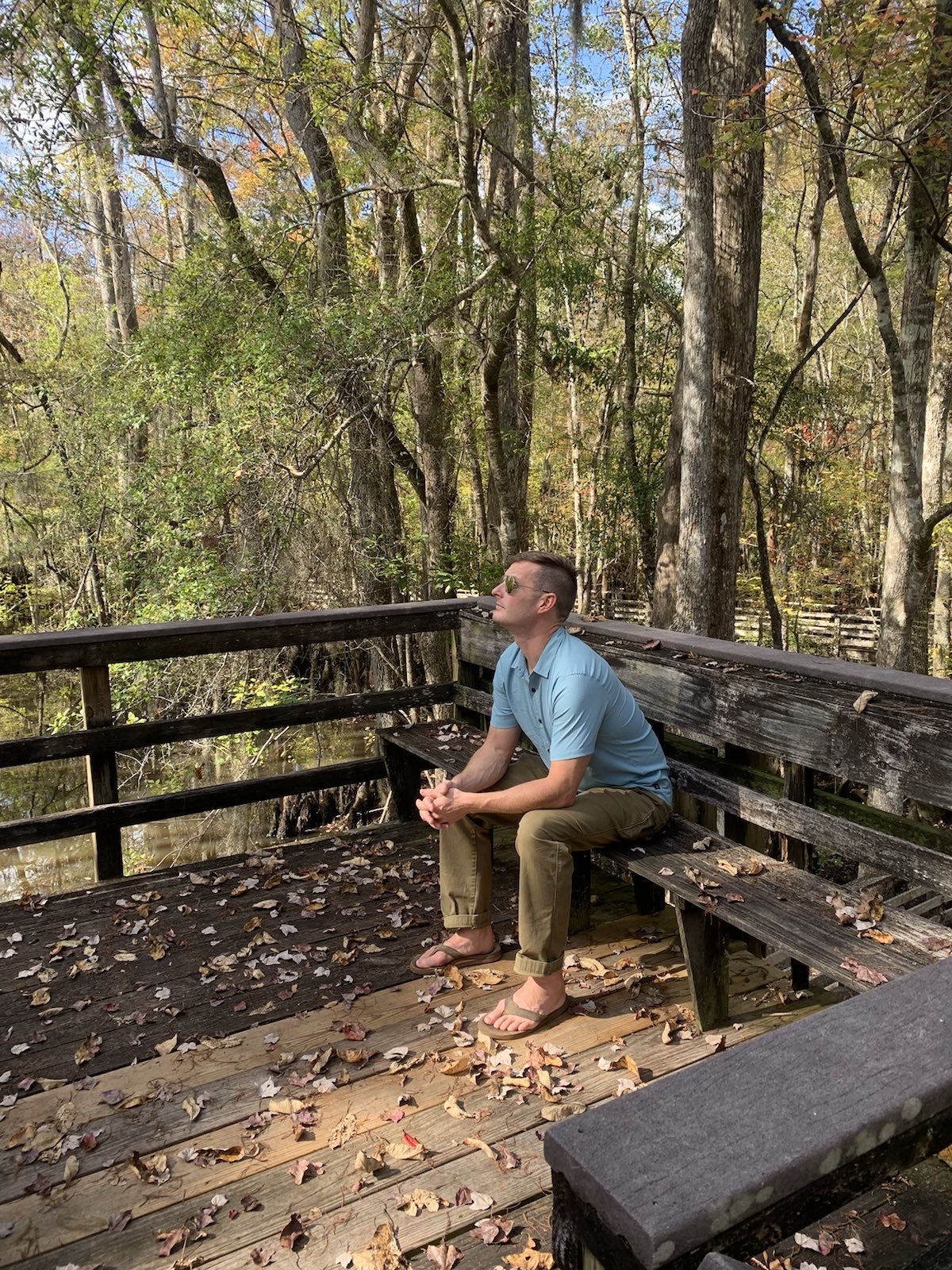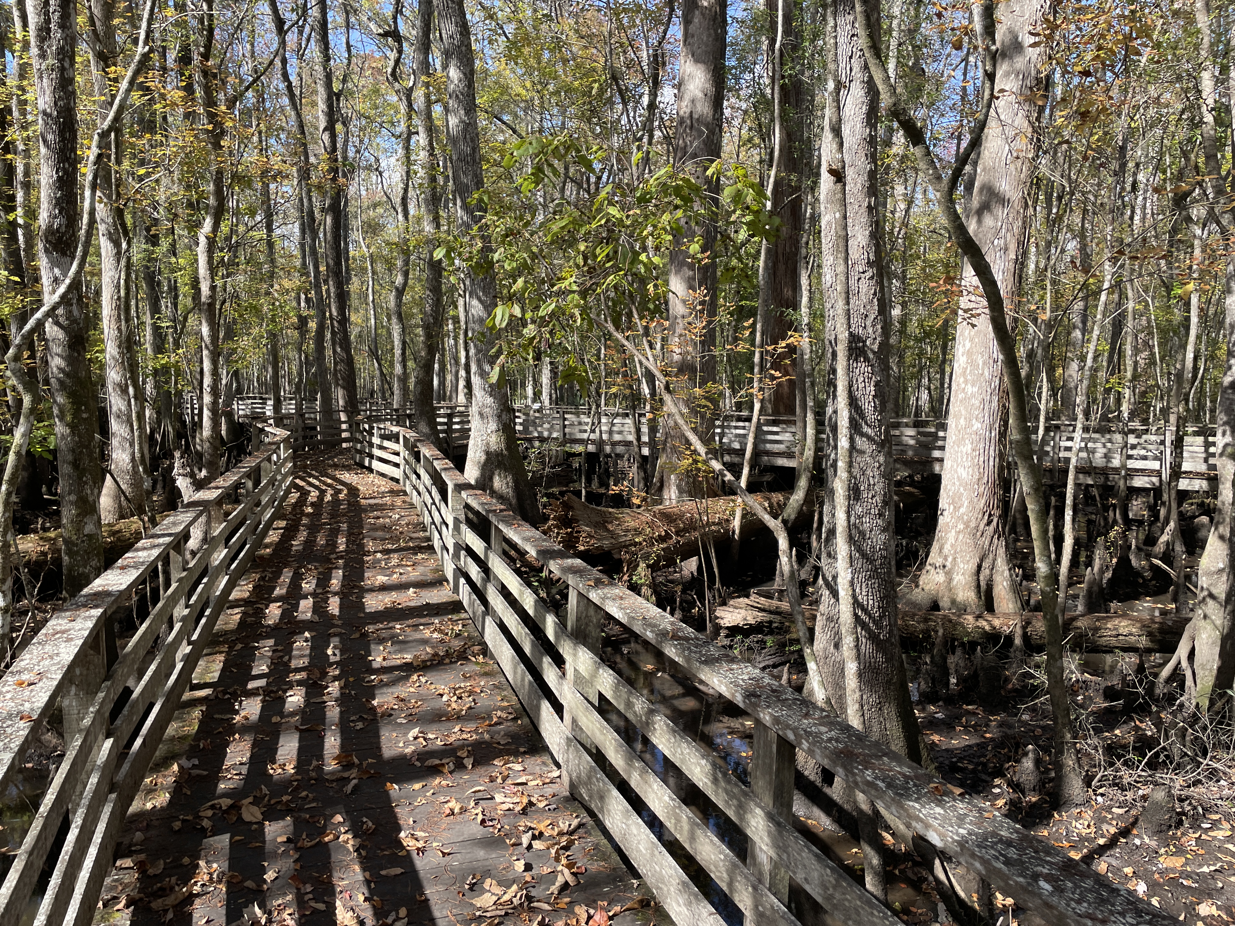 On the way down to Charleston and Becky’s we stopped to visit Beidler Forest, an 18,000 acre nature preserve owned by the Audubon Society. I had always wanted to see it but had never gotten the chance. We spent about 2 hours walking along the boardwalk that passes over top of the old-growth cypress-tupelo swamp forest and enjoyed learning about this unique ecosystem and looking for the birds and animals that inhabit it. We had been lent binoculars at the visitor’s center and were thankful to have them because it let us zoom in on a sun basking alligator in a pond. Immediately after we saw the alligator a barred owl landed just a few feet away from us, its lunch, some sort of rodent, in its talons. It was seemingly unphased by us and chowed down on its meal right next to us before flying off to a nearby tree to rest and digest. Its wingspan was impressive!