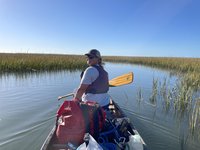 Once we arrived at the Gadsenville Road put-in and parking lot, we didn’t have to wait long. Joey Geiger was the trip leader and pulled in right after we did. Scott and I were happy that he would be leading us and could impart his expertise to navigate our way through the complex labyrinth of tidal creeks and marshes on the 3.5 mile outbound paddle to the island where we would be camping that night.