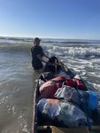 Once we got close to the island the breaking waves of the Atlantic ocean greeted us. Joey was able to keep paddling through the breakers in his sea kayak but Scott and I opted to get out of our canoe and “leash walk” our canoe along the shore until we were closer to the area where we would be camping to avoid the risk of getting flipped and swamped. We made it to the designated camping part of the island and pulled our boats up onto the beach (they were heavier than you would think considering how little we were able to bring). It was time to explore and set up camp!