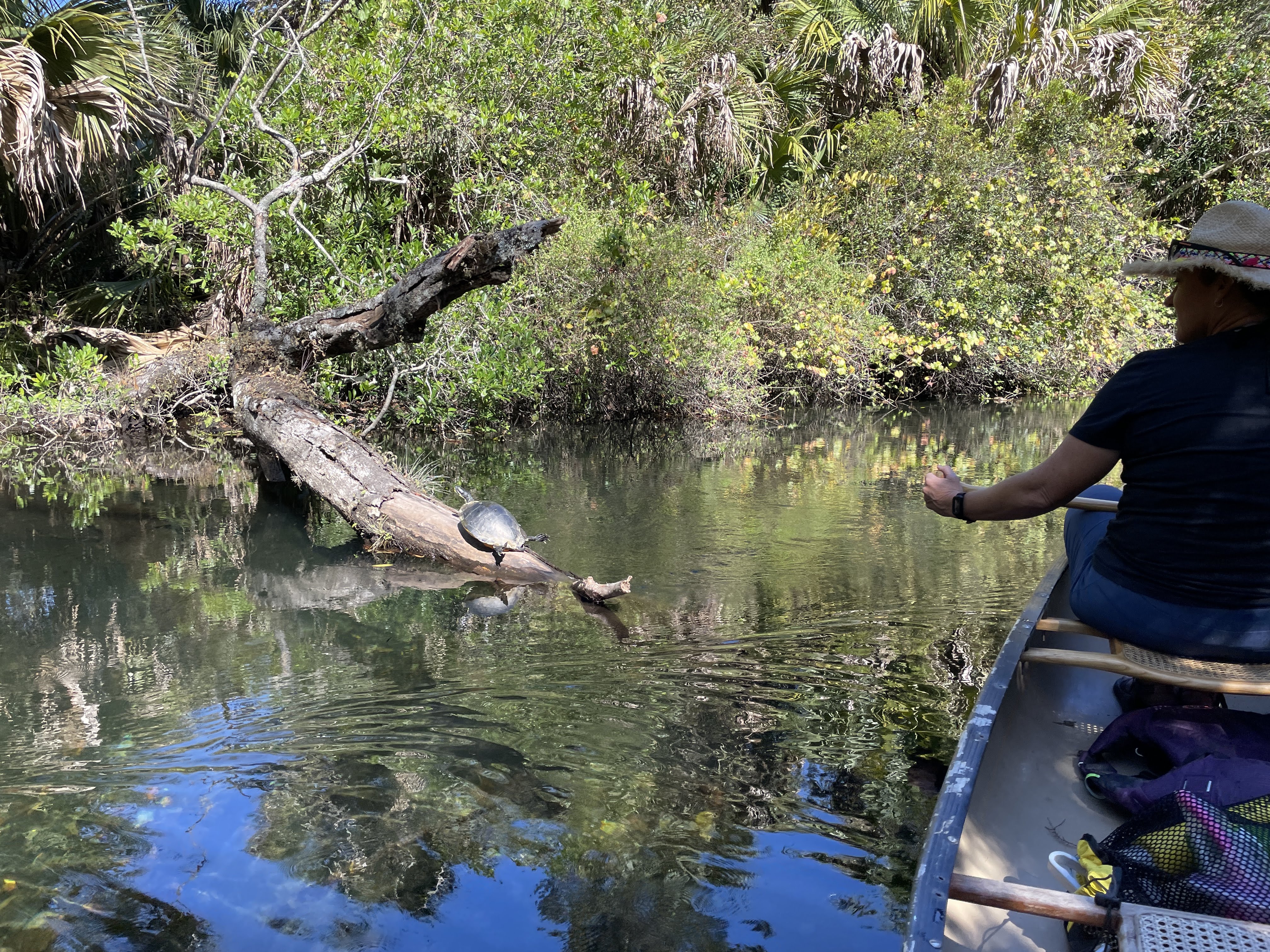 The bird and aquatic life wasn’t as robust as the day before at Silver Springs but we still saw some- mostly trout and turtles. As we got towards the last ⅔ of the run the creek broadened out and we startled some deer that were drinking from the waters edge. We also saw a dead and decaying Gopher tortoise along the shore and that was how we finally knew we weren’t actually on a water ride at a Disney theme park.