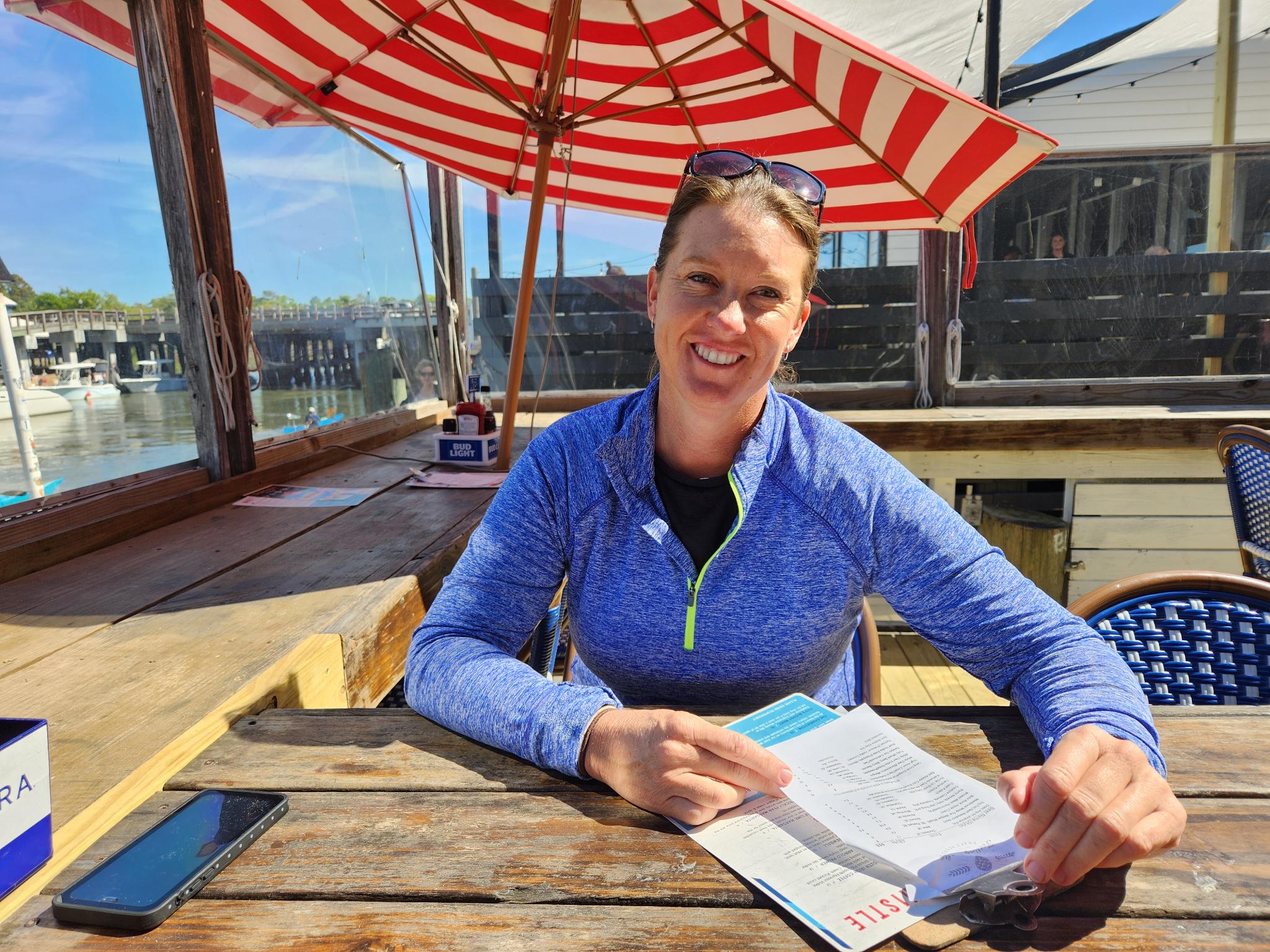 Sunday morning we said our goodbyes and Scott and I went to check out Isle of Palms. As we drove over the bridge it was fun to revel in our accomplishment from the day before and despite a very tired and sore body I was elated with how I had run and how I felt while doing it. It was nice taking a leisurely barefoot walk on the cool wet sand and seeing the Bridge in the distance. We were treated to a dolphin show and hung out and watched them feeding for a few minutes before heading back to the car. We drove through Sullivan’s Island to check it out and then went to Shem Creek for an early lunch, stopping at a restaurant we enjoy, Red’s Ice House. Full, tired, a little sore, but very content, we drove back home to Greenville, already thinking about the 2025 Bridge Run.