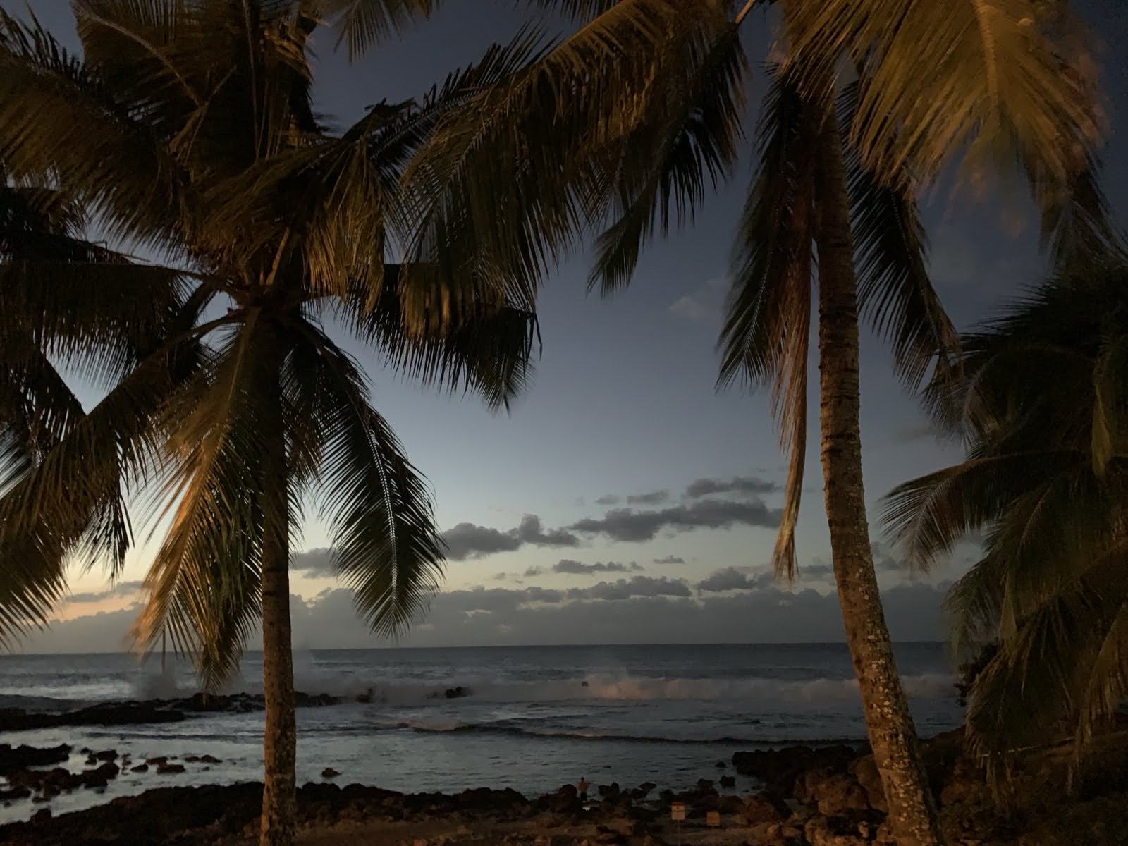 Scott, my faithful Uber driver, picked me up when I was done for the day and we headed in search of dinner. We stopped for takeout at a place called Seven Brothers across from Shark’s Cove. We walked across the street and had our dinner sitting on a brick wall overlooking the beach at the snorkeling spot (which was closed that day due to dangerous surf) and while we were eating we noticed some people on the beach playing with fire. Literally. A local fire dancing troupe were taking turns twirling fire sticks and “poi” (poi means “ball on a string”) which was mesmerizing to watch and was right up Scott’s alley. When we had watched our fill of fire dancing we headed back to Kailua, and as had become the norm, fell right into bed.