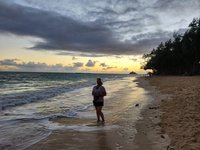 The certification didn’t start until nearly lunch time on Saturday, so Scott and I were able to get in a nice morning walk to and along the beach. This time we headed north from Kailua Beach and made our way to Kalama Beach. Along the way we were treated to a colorful sunrise and a stunning rainbow.