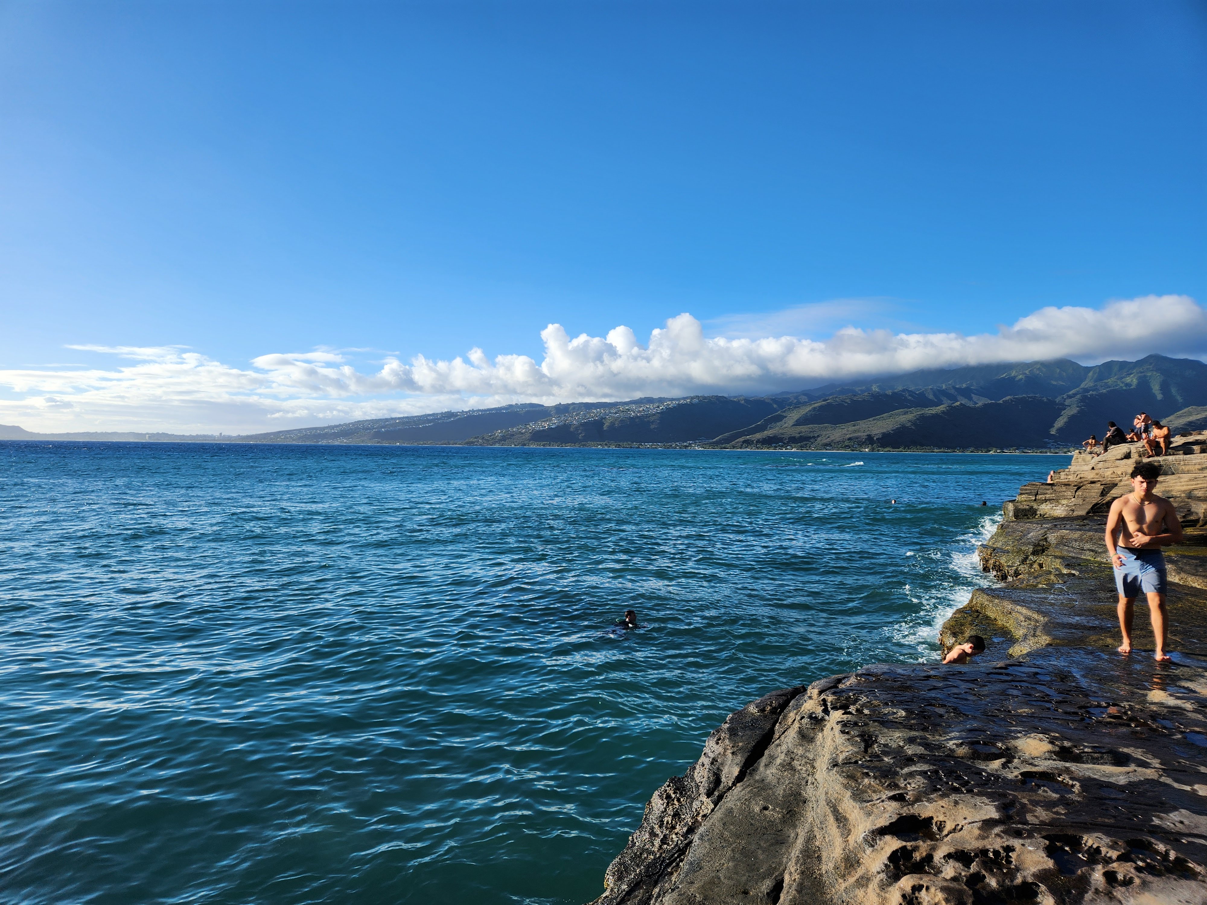 Scott here! After much research, I found a dive shop in Honolulu called “Island Divers” that was much closer to Kailua that had a dive charter package that worked with our schedule. It provided three dives on one charter, all in nearby Maunalua Bay. The first dive was at a crashed Corsair airplane at about 115 fteet. The plane had gone down in the 1940’s (the pilot was ok). The water was warm and the visibility was good so I was able to explore the decayed and coral covered wreck for about 40 minutes and saw lots of schooling fish that were attracted to it. The next dive was only about 15 minutes away and we sat around talking and waiting until we had an appropriate surface interval before we dove again. The second dive was called New Barge and was eventful because we saw a six foot long whitetip reef shark swimming along the ocean floor. It was another short boat ride to the next dive site which was a drift dive which means the boat drops you off and you let the current push you along. We drifted along a shallow coral ledge at about 40 feet and saw two moray eels and some puffer fish. We got back early afternoon and from there I headed to Waikiki where I did a little hammocking and walked along the beach. While hammocking, I called a small kayak outfitter that I had found and arranged to rent a two-person sea kayak so that we could kayak later in the week. On the way back I stopped at China Walls and jumped off of its cliff and swam. I’m handing it back to Janna now.
