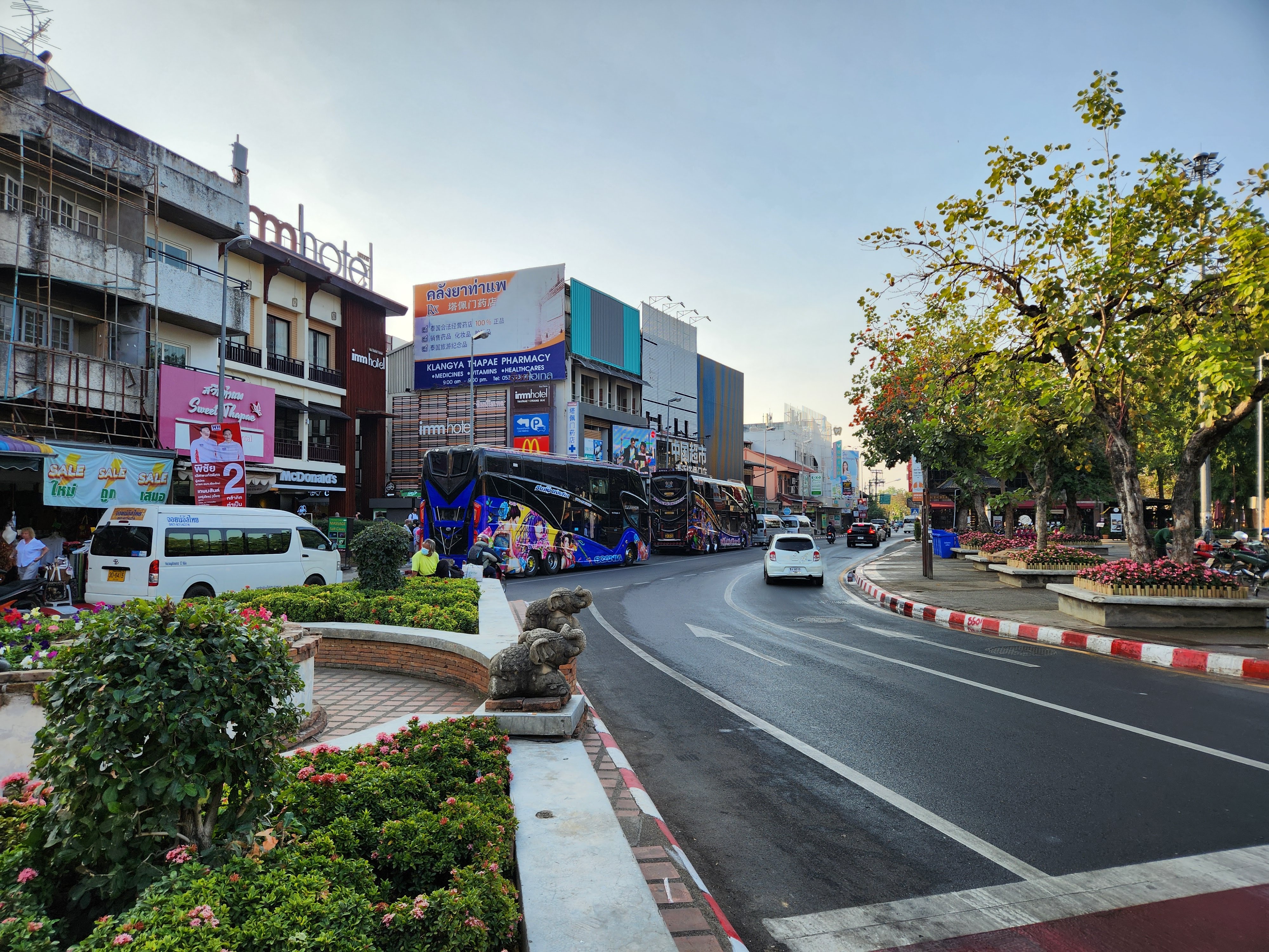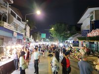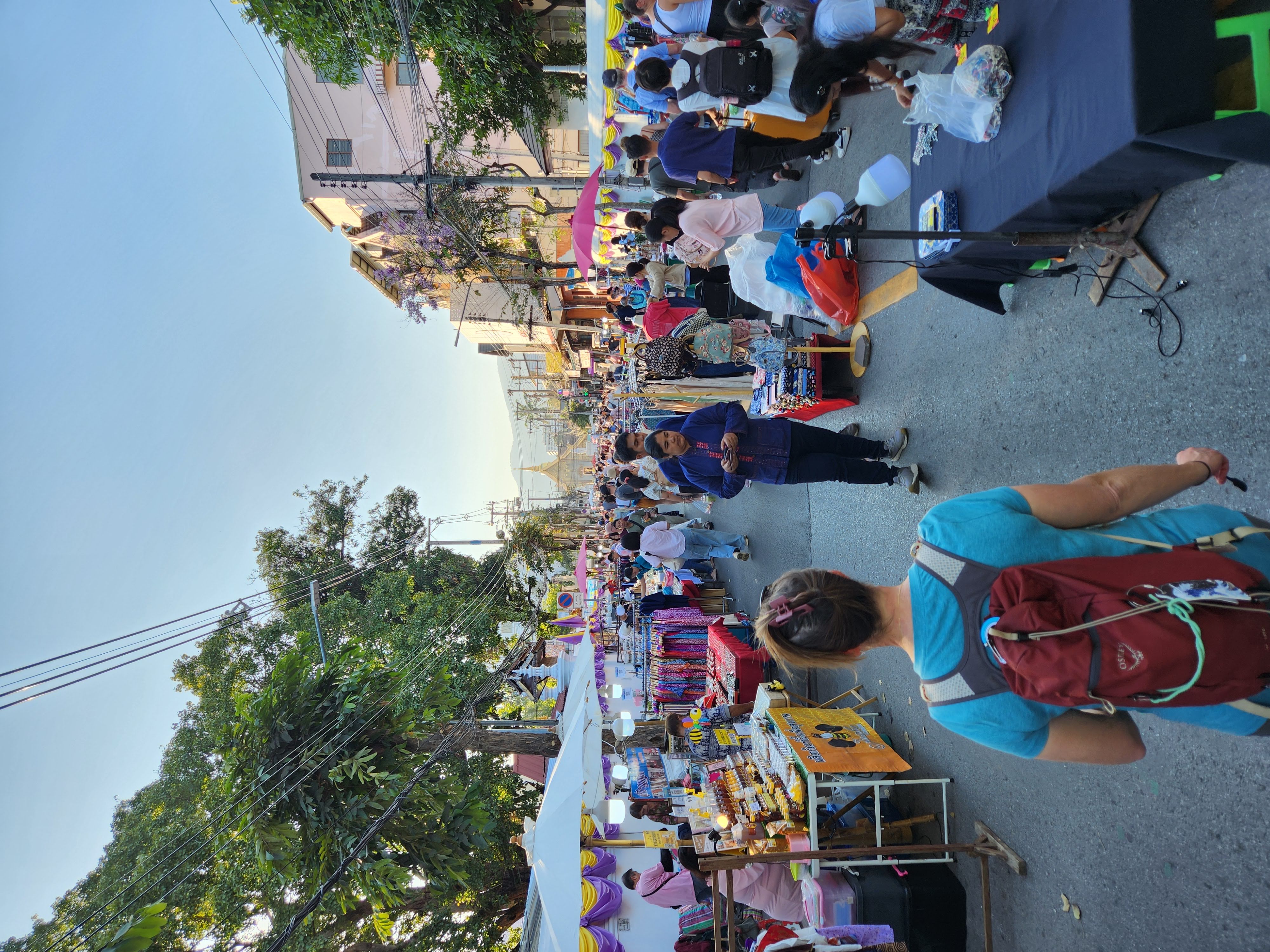 We headed back to our hotel. I decided a nap was in order and Scott decided that he wanted to explore more of Chiang Mai. He wandered northeast where we hadn’t ventured yet and first ended up in an area with several clothing stores. He decided to see if any of them carried the “Made in Thailand” Woolly brand merino wool shirts (Amazon) that he wears and specifically picked for travel due to their quick drying properties and their ability to repel odor. No luck. So he continued along and found an art gallery, the local Muay Thai boxing arena, popped into a McDonald’s to see how their prices compared to back home, saw the night bazaar being set up, and then got a lime smoothie. He reported that the lime smoothie made for a rather “puckering experience.” I eventually texted him inquiring as to his whereabouts and he started heading back to Fang Chiang Mai, walking along the canal.