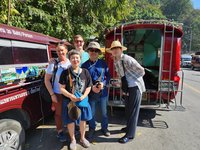 We made our way back to a street corner where many of the red truck taxis were gathered to see what sort of price we could secure for a trip up and back, and had the good fortune of timing our arrival to the taxi rank with a family of three from South Korea that was also haggling out the details of a trip to Doi Suthep. The red truck taxis can fit about eight people and the cost per person is lower the more people are inside it, so we asked the family if they wanted us to join them. They were happy to have us and we quickly made friends during the ride.
