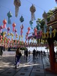 Wat Chedi Luang: This one might be my favorite because it had an asymmetry that gave it character- the top of the tall structure was missing, lost to an earthquake in 1545. It also had stone elephants around the temple. It was impressive because of its height and the grounds were decorated with elaborate colorful fabric lanterns.