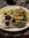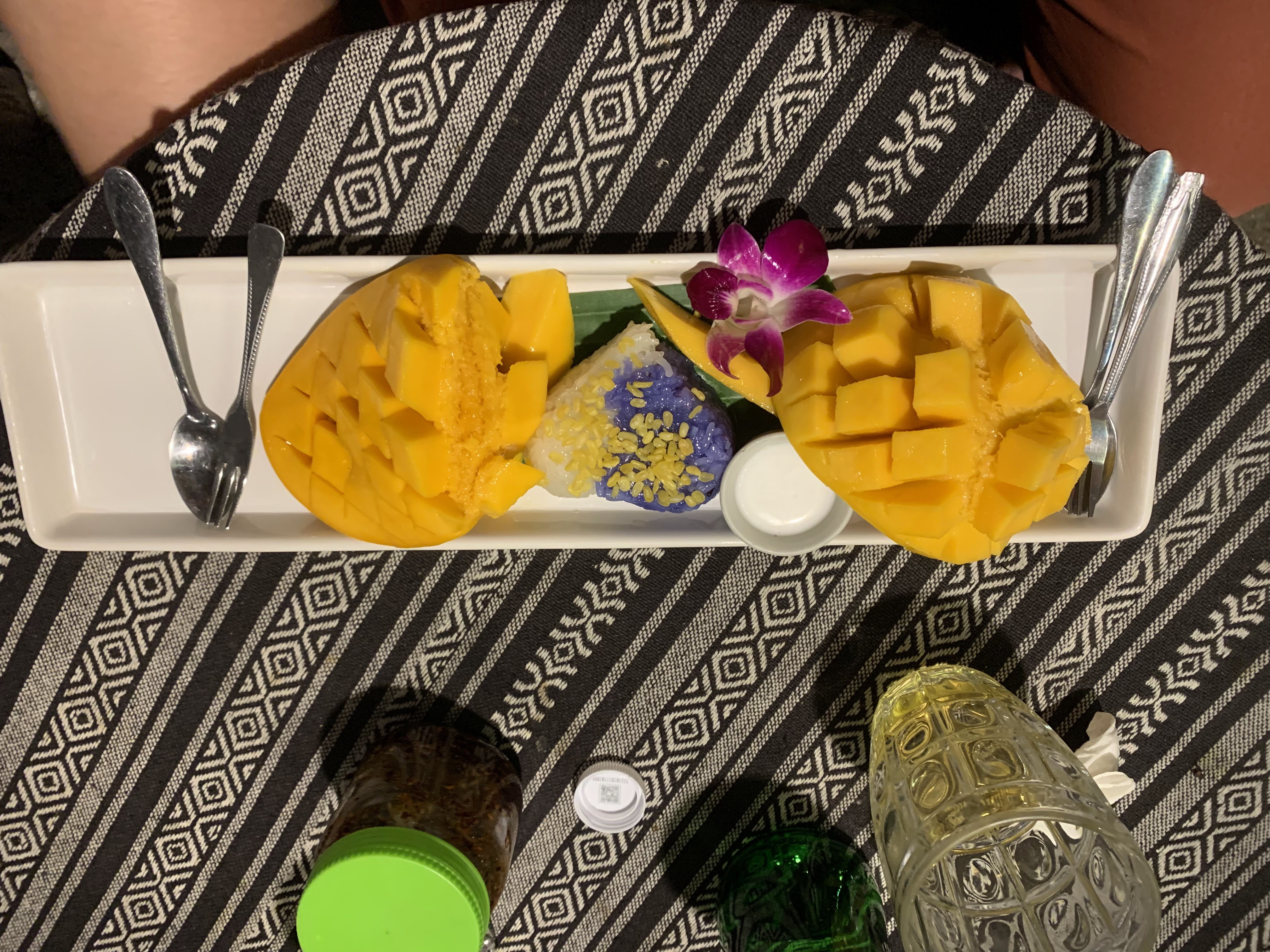 Dinner was superb. The food was excellent- I had green curry and the rice that came with it was shaped into the form of a teddy bear. It was so cute that I didn’t want to scoop into it to eat it. Scott had pineapple fried rice with cashews, and it came served in an actual pineapple that was cut in half. For dessert we had mango sticky rice for the first time and were immediately hooked. It is a common Southeast Asian dessert and we realized why it is so popular the moment we had our first taste. Too stuffed and exhausted to walk home, we opted for a cab and headed back to Fang Chiang Mai.