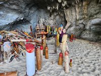 On our walk to Phra Nang, we encountered one of the many caves on the island that are part of the National Parks system. Thankfully the employee had on a National Parks polo shirt because otherwise we would have declined paying to go inside it, thinking that paying some guy admission to this place was a “common scam in Thailand.” He was legit, as was the cave, but the boardwalk that wandered through the cave system was not. It was a hot mess with missing boards and a patchwork of materials, all bonafide and significant tripping hazards. The cave itself was interesting and had a loud and noisy bat colony that lived inside it.