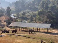 We were sent back up the hill to the pavilion for a (clothed) group shower and to change back into our street clothes, and the mahouts and the elephants headed back into their pasture area to graze, browse, and forage among the bushes, trees, and shrubs. Elephants require 10% of their body weight a day in food, which is significantly higher than other large herbivores that only require 1-2%. I started thinking about the amount of land that it would take to sustain a herd of elephants and quickly had my mind blown.