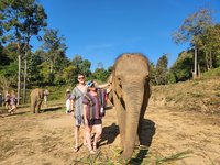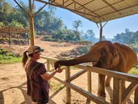 Author’s note: I had to pick my battles here. Through my research prior to our trip, I had learned that truly ethical elephant sanctuaries are touch free and do not let participants touch the elephants, only watch them from a comfortable distance. This means no feeding, no bathing, etc. While there has now been a movement to end elephant riding in Thailand, it is still technically legal, and many unsavory companies still offer it. However, there are many other ways that elephants are exploited for the entertainment of humans: logging, circuses, and even the activities that we did with them such as the feeding, and bathing. Elephants don’t need us to bathe and mudbathe them, and in fact, would probably prefer we not.