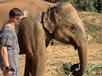 Today was Elephant Jungle Sanctuary day! A minibus from the sanctuary picked us up bright and early from our hotel and we piled into it, introducing ourselves as we climbed over people and made our way to the empty seats in the back. There were people from several different countries1 already on the bus and we were all headed about an hour and a half southwest of Chiang Mai to the sanctuary. The bus stopped about halfway along the route for everyone to have a 7-11 and toilet break before continuing on.