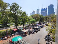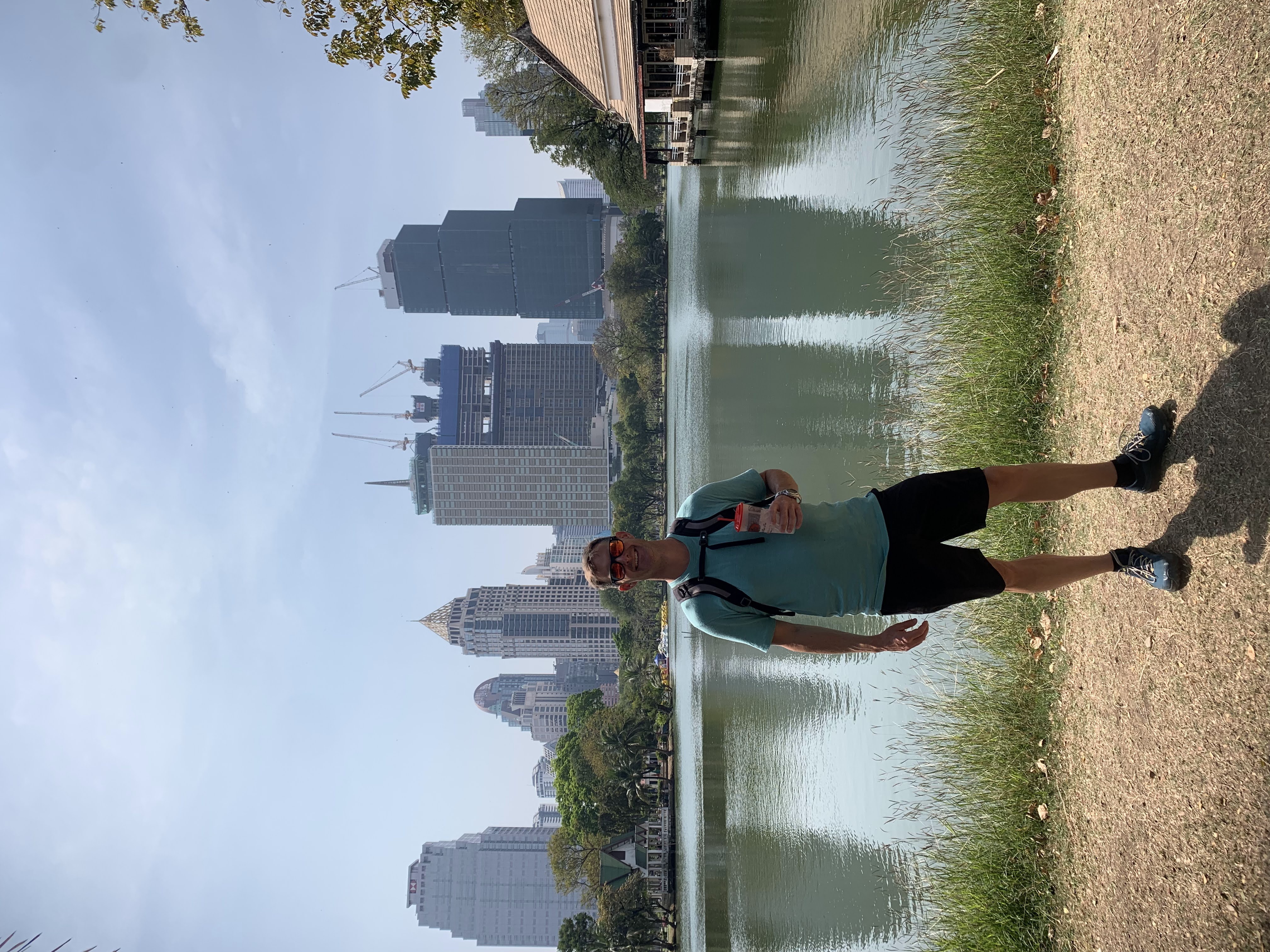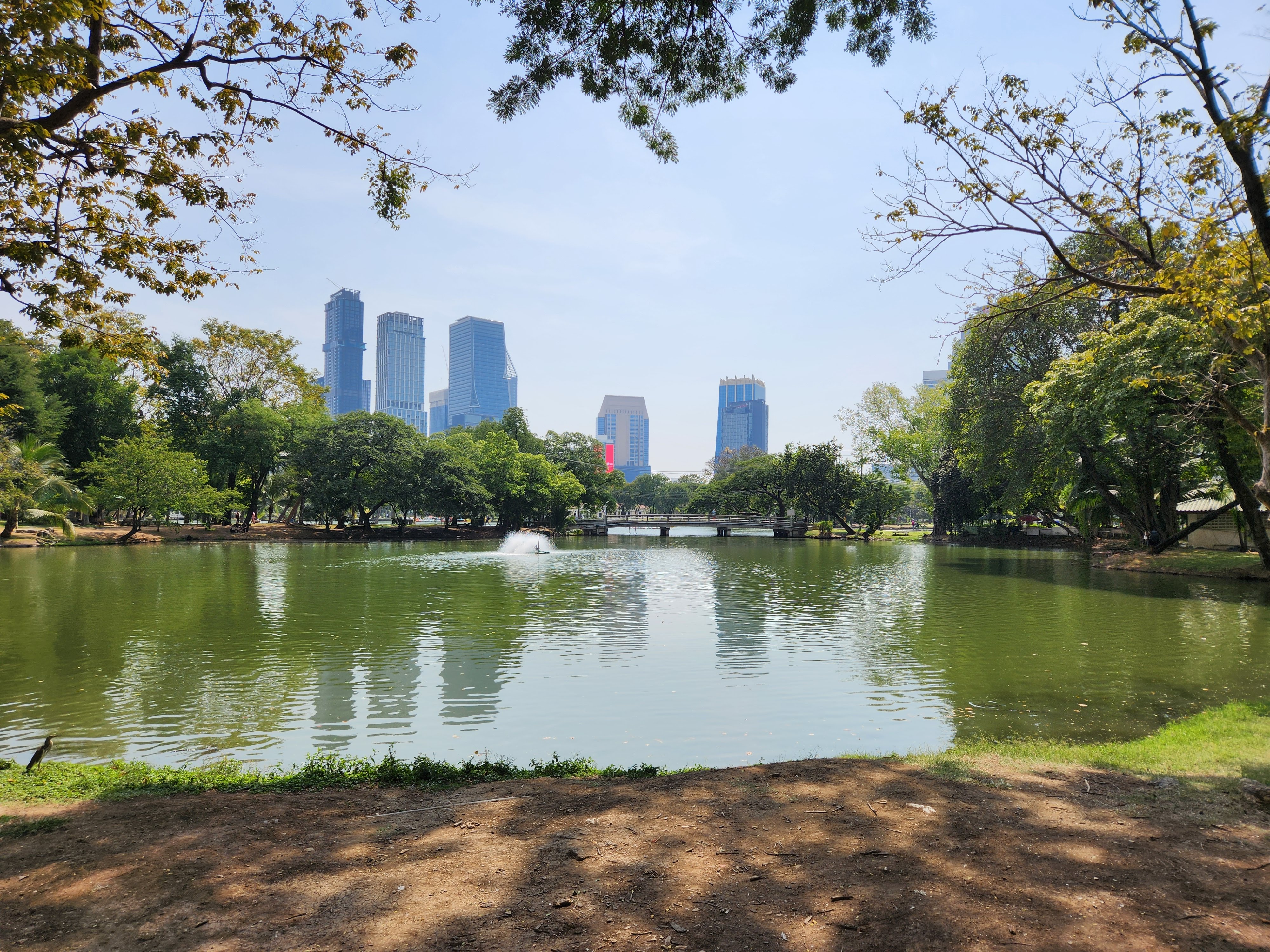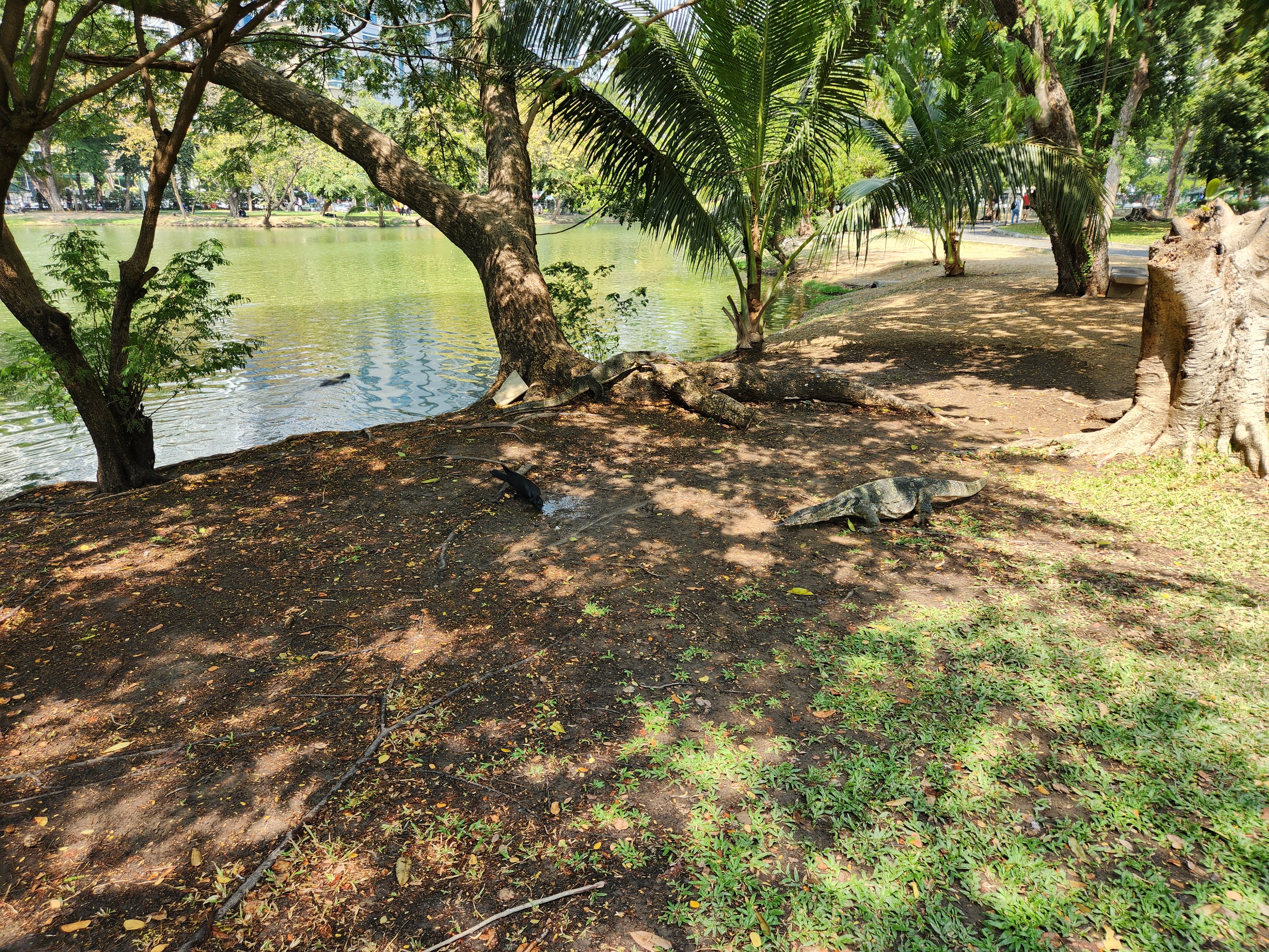 He got out of the tub rejuvenated and we decided to go to Lumphini Park for a picnic and to hopefully be able to see some of the “lumphini lizards” that it is home to. Lumphini lizards are actually Asian water monitors and are close relatives of the Komodo dragon. We had seen them referenced in a lot of the YouTube videos about Bangkok that we had watched during our trip planning and were eager to see them in person; the idea of alligator sized reptiles roaming casually around a city park piqued our interest.