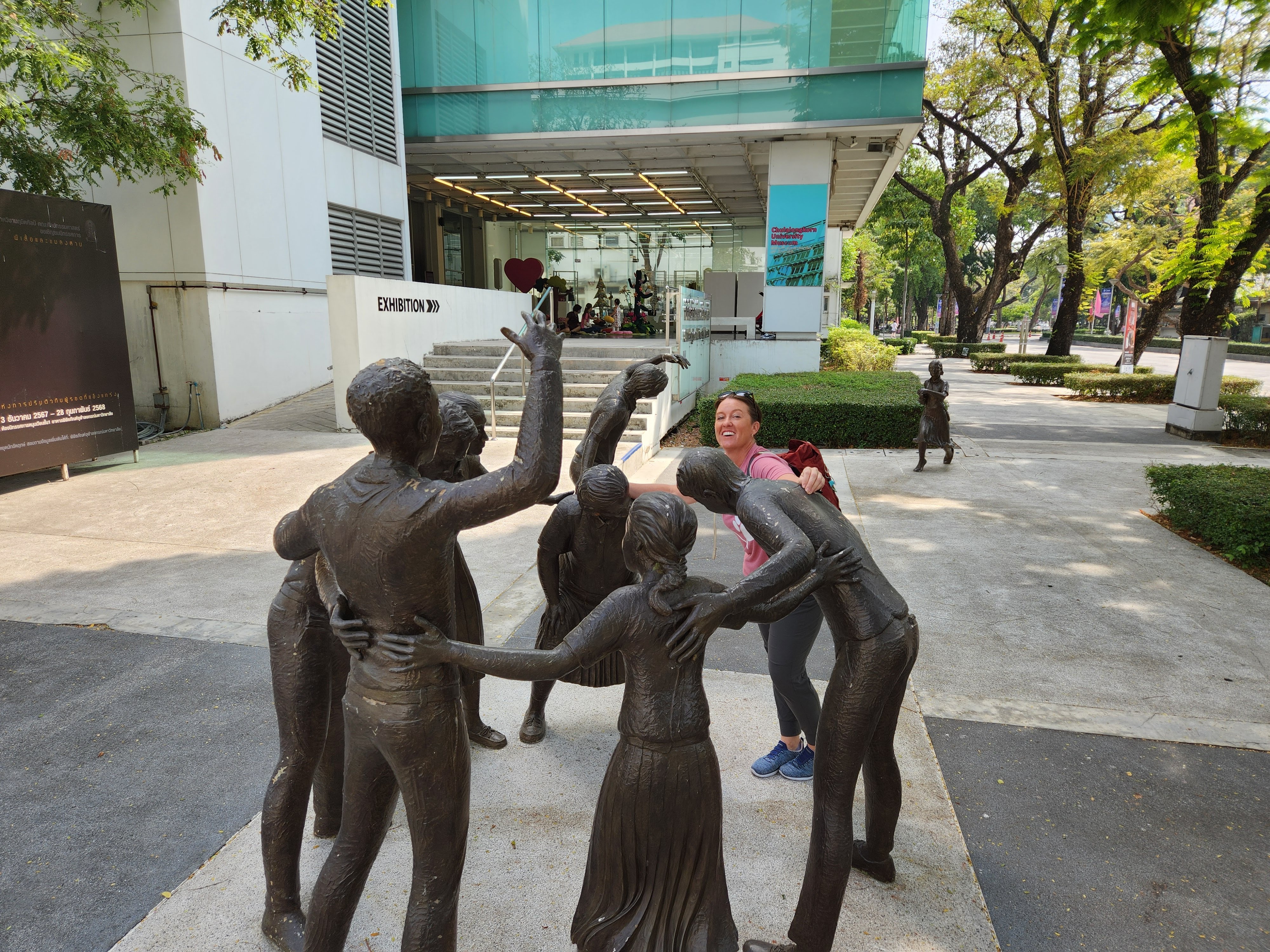 We had our picnic and only ate a fraction of the food we had purchased but enjoyed sampling it all. We strolled around the park and saw several more lizards. Watching them swim in the ponds in the park reminded me of watching alligators swim and I knew that I had zero desire to ever swim or kayak in a body of water that they might also be occupying. When we’d had enough of the lumphini lizards we decided to retrace our steps through the Chula campus. We stopped for what would be our very last Thai smoothie and we sat on benches in the shade of giant sycamore trees savoring every sip. We headed back to The House of Papa and relaxed for a bit before we headed out for the evening’s festivities.