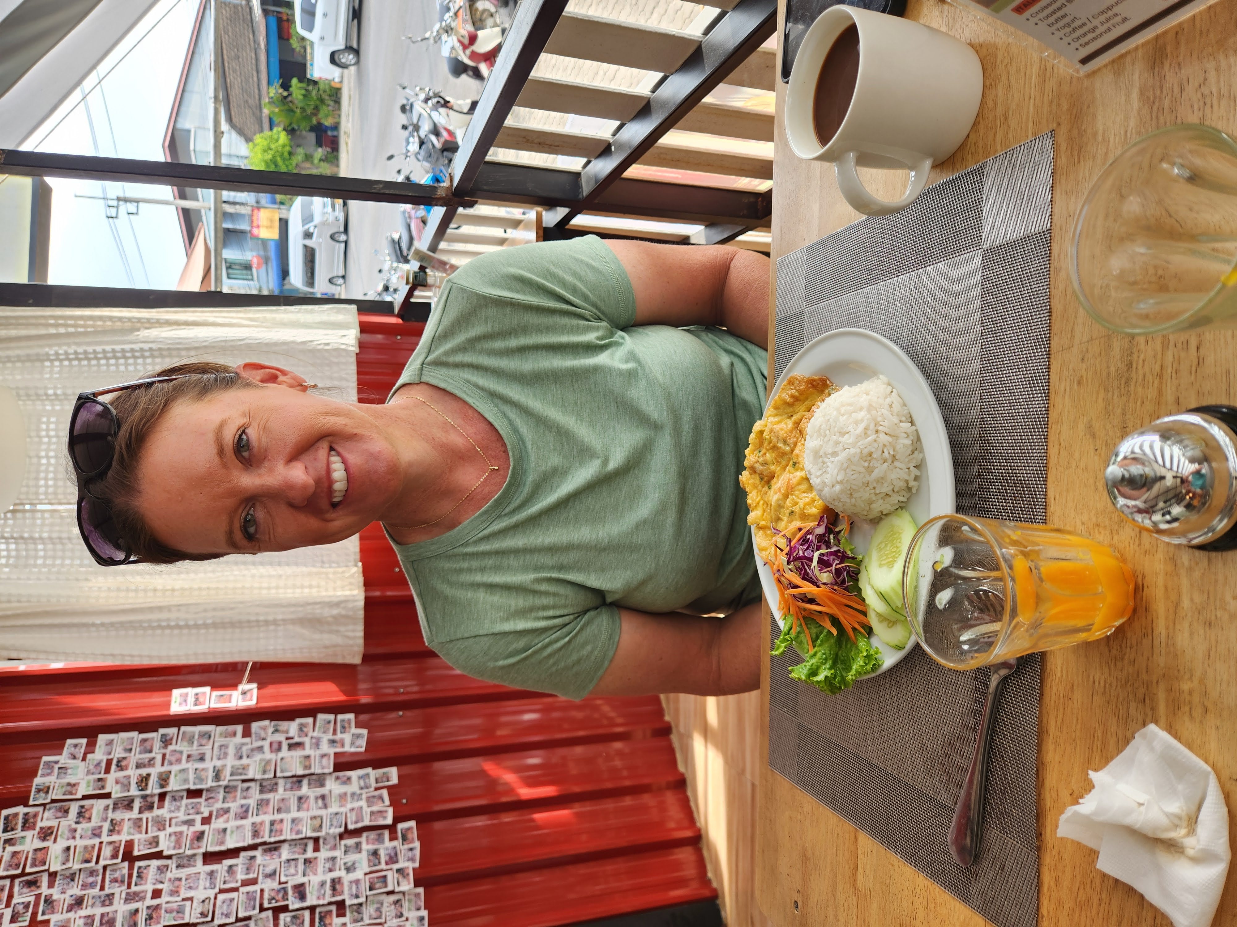 After receiving our coffee from our attentive server, the owner came out to check on us and introduce herself. Her name was Nim, and she treated us to her fascinating story. She was one of those people that you feel like you’ve known a lifetime the moment you meet her. The Happy Porcupine was a life’s dream realized for her and you could tell how passionate she was about her endeavor and sharing good food with visitors as well as regulars. Our meal, (Thai style omelettes) in addition to the company, was lovely. We had to peel ourselves away eventually so that we could go rendezvous with our excursion driver.