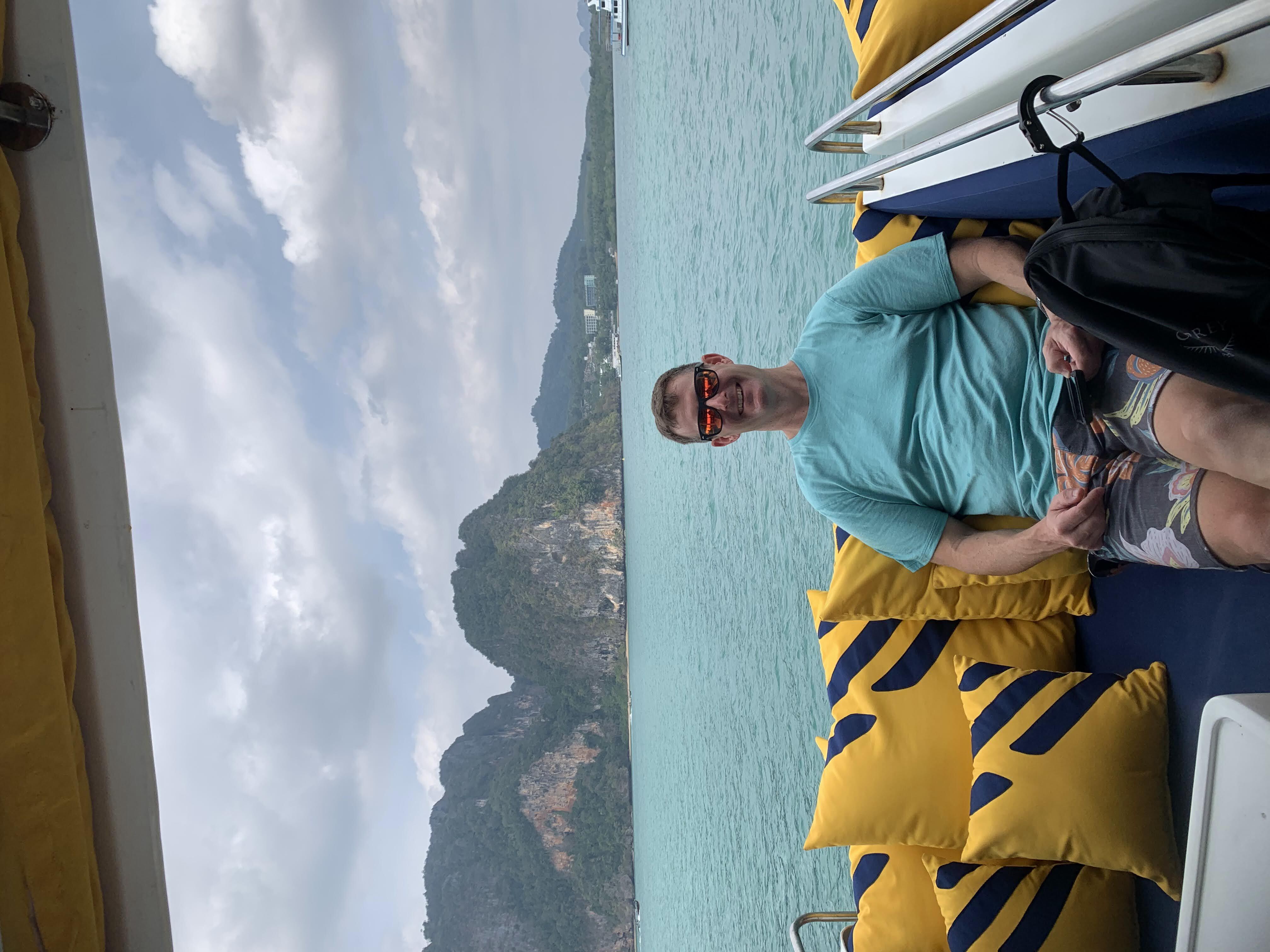 After some confusion about having to pay the National Park fees (we thought our tickets from the previous day when we had visited the caves were good for this park entry fee as well, but it turns out they were not) we were set and headed to the pier to get loaded onto a longtail boat to be tendered to the catamaran. Along the way we were chatting with the only other American couple on the tour who ended up being from Charleston, SC of all places!