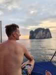 They served us an afternoon tea as we sailed on to Chicken Island, passing Bamboo Island on the way. They timed it so that we would be able to watch the sunset near Chicken Island. Their timing was perfect and we were treated to one of the best sunsets of our trip as the sun slipped dramatically down the horizon right over top of the Phi Phi Islands and cast a soft orange glow over the karsts and eventually seemed to lower itself gently into the Andaman Sea.