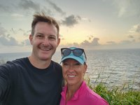 We woke up obscenely early this morning and hit the rough Cruzan roads by 4:30 AM to make our way to Point Udall, the easternmost spot in the United States, to catch the sunrise. It took us every bit of the hour we had allotted, and we arrived just in time to join the crowd of 50 or so other people who had gathered there before us to watch the sun make its way up, emerge above the horizon, and eventually break through the clouds. After we had done this “thing you’re supposed to do in the place you’re supposed to do it” we headed back toward Christiansted in search of breakfast. We were initially puzzled that many of the breakfast spots that had come recommended in Scott’s research weren’t open until we remembered that today was a holiday: it was Juneteenth. We eventually found a breakfast spot in downtown Christiansted that was open and sat outside on their patio and had breakfast before returning back to Fredriksted for me to teach.