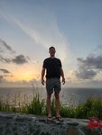 When I was somewhat cross-eyed from my glass search and my back was starting to complain from being crouched over, I headed back to the hammock where Scott had positioned himself. He poured me some of our Cruzan pina colada mix and we enjoyed watching families celebrating their holiday at the beach, swimming and picnicking. From our hammock we bore witness to the sunset over the Caribbean, the day made special by having said both “hello” and “goodbye” to the celestial body around which our planet revolves before we called it a day and headed back to Hilltop House.