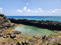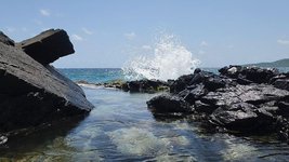 The pools were teeming with aquatic life, a micro-ecosystem at play, and we saw several species of fish and sealife, but luckily didn’t see the venomous sea snakes that some people have reported spotting in the pools. We enjoyed swimming and exploring and made our way to each of the pools in the series. We stopped at one that had the most clear opening to the sea and sat on the boulders and periodically got soaked by waves as they crashed against the rocks spraying surf that rose up several meters into the air and deposited more water into the pools. It was reminiscent of our trip to the Queen’s Bath in the Mokes in Oahu.