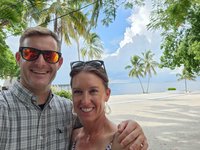 We had a little time before we needed to shower and get dressed for the wedding so we decided to take out one of the kayaks that we had access to with our rental. We decided on the tandem kayak and I was surprised when we were able to both lower ourselves down into it off the dock successfully without capsizing it. We (and by “we” I mean mostly Scott) paddled our way out of our marina’s channel and into the bay. The bay was protected on three sides by mangroves and made a protected area for anchoring boats. We paddled around the area for a while and observed some of the boats before hopping out of the kayak and taking a little float next to it. The water was surprisingly shallow and the sand was unpleasantly squishy, reminding me of Lake Hartwell’s muddy base as it squished between my toes so I didn’t spend much time out of the boat. We decided to head back in and we were now paddling against the current so I actually helped Scott paddle this time. We disembarked from the kayak and climbed back up onto the dock surprisingly easily, again not capsizing the boat.