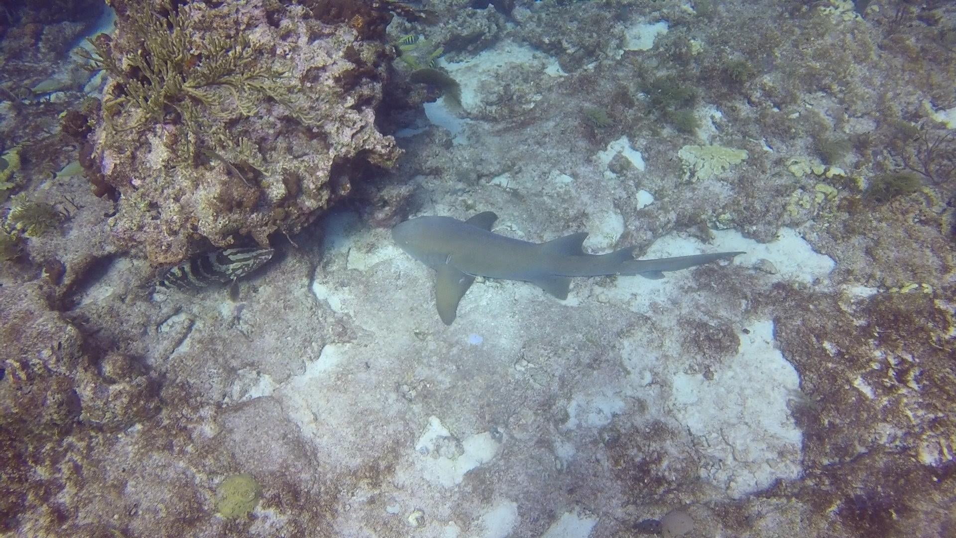 Scott got back a little after lunch and told me about his dive. The dive shop was about 20 minutes away from our boat, and was called Key Largo Dive Center. They did two dives and it was just Scott, one other customer, several staff and guides, and one student diver. Both of the dives were at Molasses Reef- the first spot was called Winch Hole and the second was called Aquarium. At the first he saw a barracuda, several interesting schools of fish, and the coral-encrusted winch that was the namesake of the location. At Aquarium, he saw a number of parrot fish, a 7 foot reef shark, an old Spanish anchor, and he enjoyed swimming through some cool coral caverns.