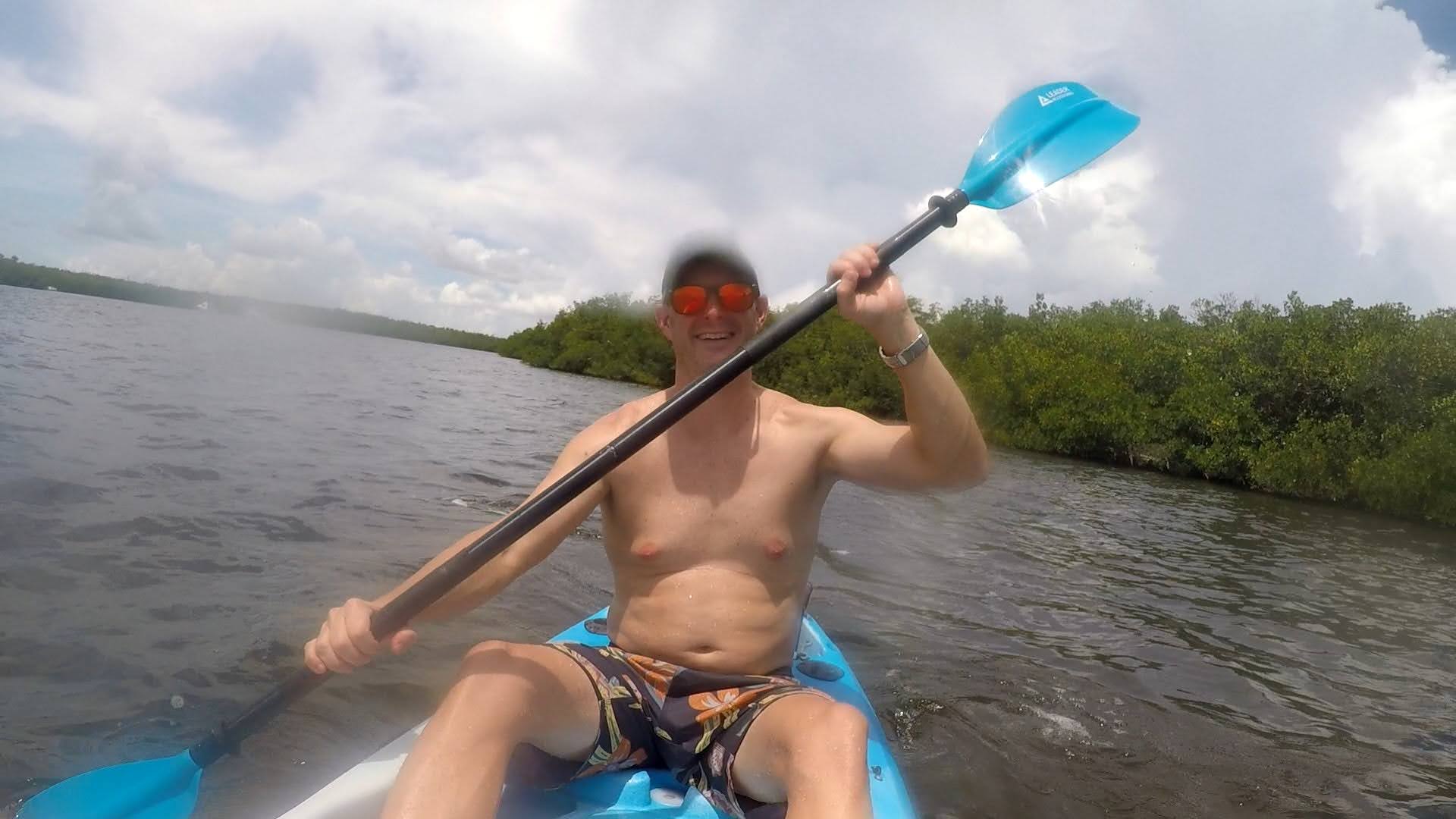 We had a little time before we needed to shower and get dressed for the wedding so we decided to take out one of the kayaks that we had access to with our rental. We decided on the tandem kayak and I was surprised when we were able to both lower ourselves down into it off the dock successfully without capsizing it. We (and by “we” I mean mostly Scott) paddled our way out of our marina’s channel and into the bay. The bay was protected on three sides by mangroves and made a protected area for anchoring boats. We paddled around the area for a while and observed some of the boats before hopping out of the kayak and taking a little float next to it. The water was surprisingly shallow and the sand was unpleasantly squishy, reminding me of Lake Hartwell’s muddy base as it squished between my toes so I didn’t spend much time out of the boat. We decided to head back in and we were now paddling against the current so I actually helped Scott paddle this time. We disembarked from the kayak and climbed back up onto the dock surprisingly easily, again not capsizing the boat.
