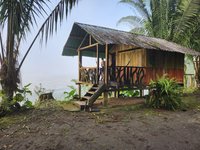 We hung out on the bungalow porch and took in the views. Our bungalow was perched on the edge of the Puyo river which was shrouded in a dramatic layer of fog this morning. As the sun rose higher, the fog burned off and we were treated to stunning views of the riverbanks around us. We rendezvoused with Carlos at 8 AM and headed off to the local cacao farm, El Paraiso Cacao Farm, to see how chocolate is produced.