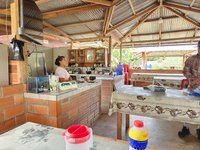 We eventually reached the road and walked on it a ways, laughing at what we must look like- clad in rubber boots and swimsuits and covered in mud. Eventually we reached the same restaurant where we’d eaten our other meals. Carlos told us to hang out while he went to get the truck. We cleaned up as best we could and waited on him and for our lunch to be ready. Carlos eventually returned and we had lunch. Scott had tilapia again (fried) and I was finally hungry again and had chicken.