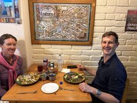 We had joked earlier in the trip that Scott should get a haircut like he had done in Thailand, and the universe served up the perfect opportunity this evening. As we were headed back to our hotel we passed a barbershop that more closely resembled a rave than a hair cutting establishment and they summoned Scott in enthusiastically when he asked how long the wait was. We enjoyed the party-like atmosphere and he got the best daggum haircut of his life, and everyone posed for a photo op at the end.