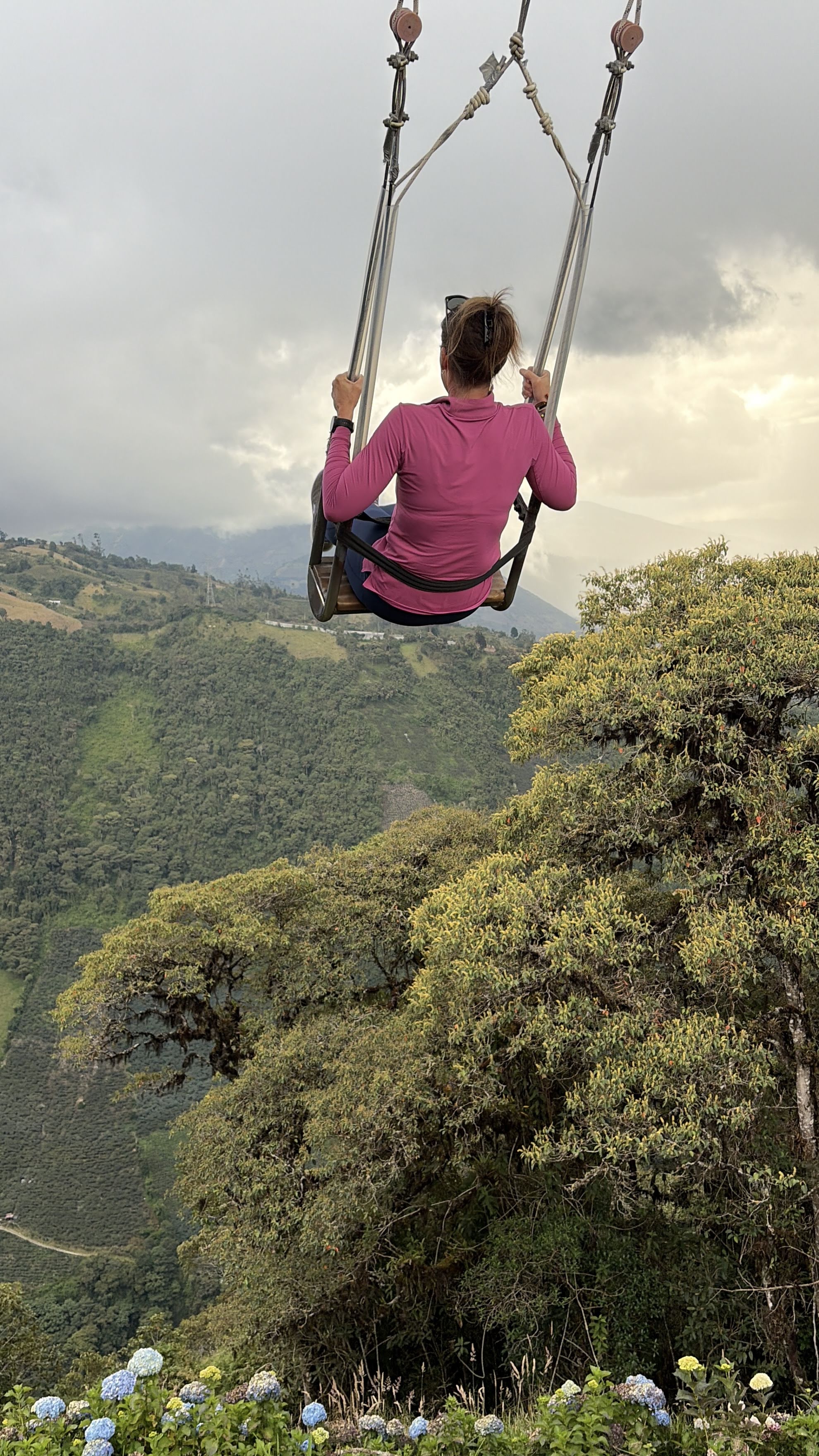 It is a park on top of the mountain with views that were incredible. It was threatening to rain when we arrived and we could hear thunder in the distance and saw moody clouds obstructing the view of the nearby Tungurahua volcano. Eventually the sun peaked through though and it made for some fantastic photos. We took turns swinging off “the end of the world,” and I will leave it up to you kind reader, to guess who swung higher, Scott or me. Similar to the Mirador Miramera it almost felt like a location designed with Instagram in mind. We enjoyed wandering around taking in the views and posing for pictures before needing to head back down to the main road to catch the city bus back into town.